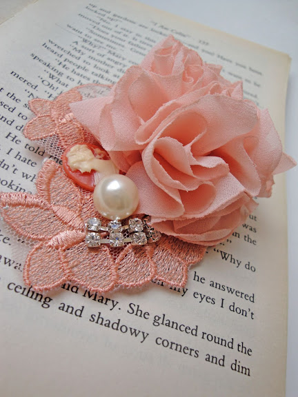 Somon rengi son zamanlarda çokça karşımıza çıkmaya başladı. Sık kullanmadığım bir renk olsa da (benim favori rengim mor, biliyorsunuz) yumuşak görüntüsü baktıkça huzur veriyor bana. Cameo ve inci, dantelle de birleşince romantik bir havası oldu tokanın, zaten renk de müsait :)